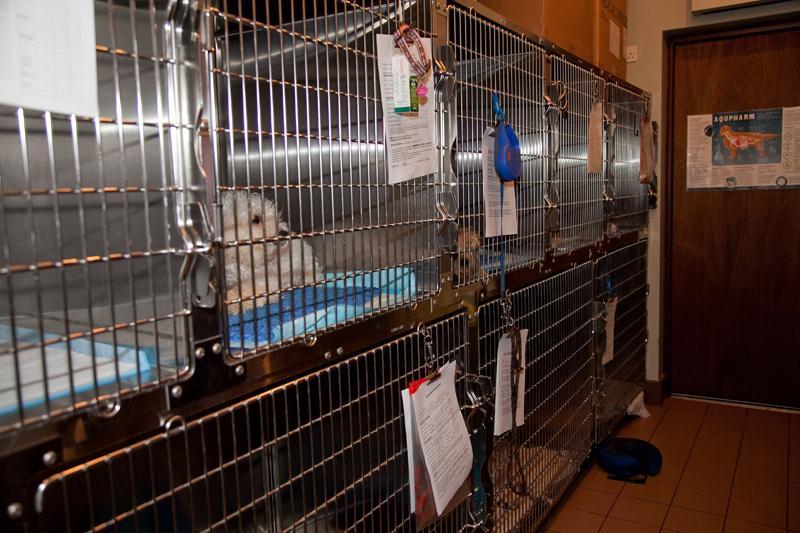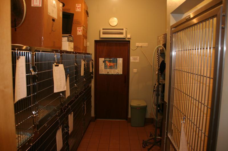 We have stainless steel kennels that are easy to keep hygienically clean in a variety of sizes including a large "Walk-in" kennel for giant dogs. We have a dog run joining the ward where we can take dogs to stretch their legs.